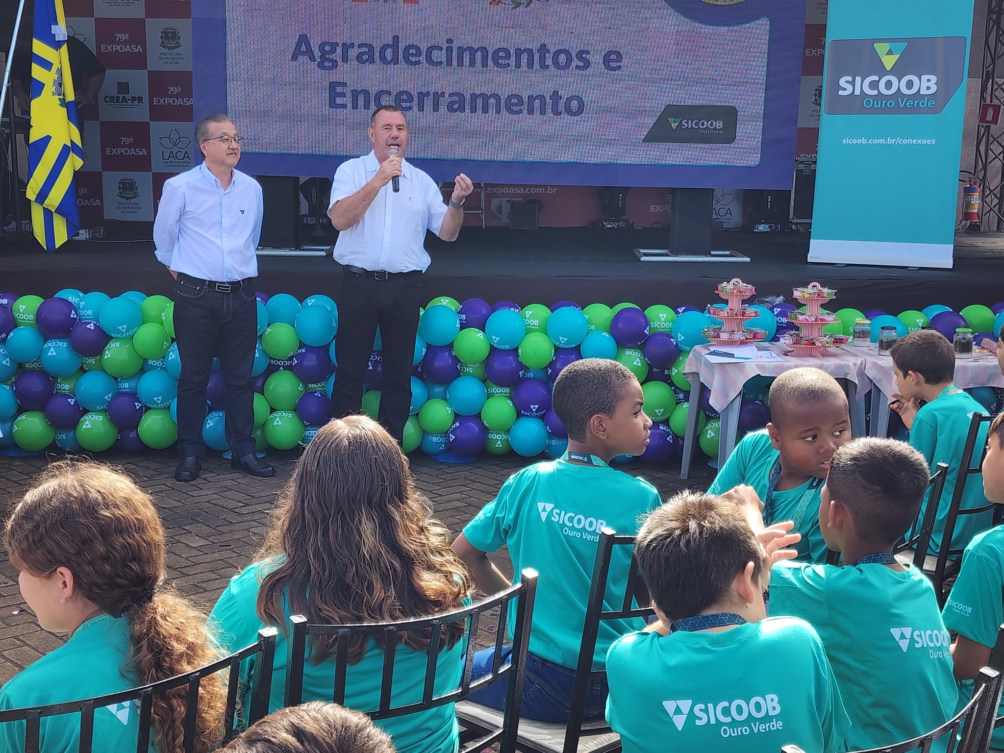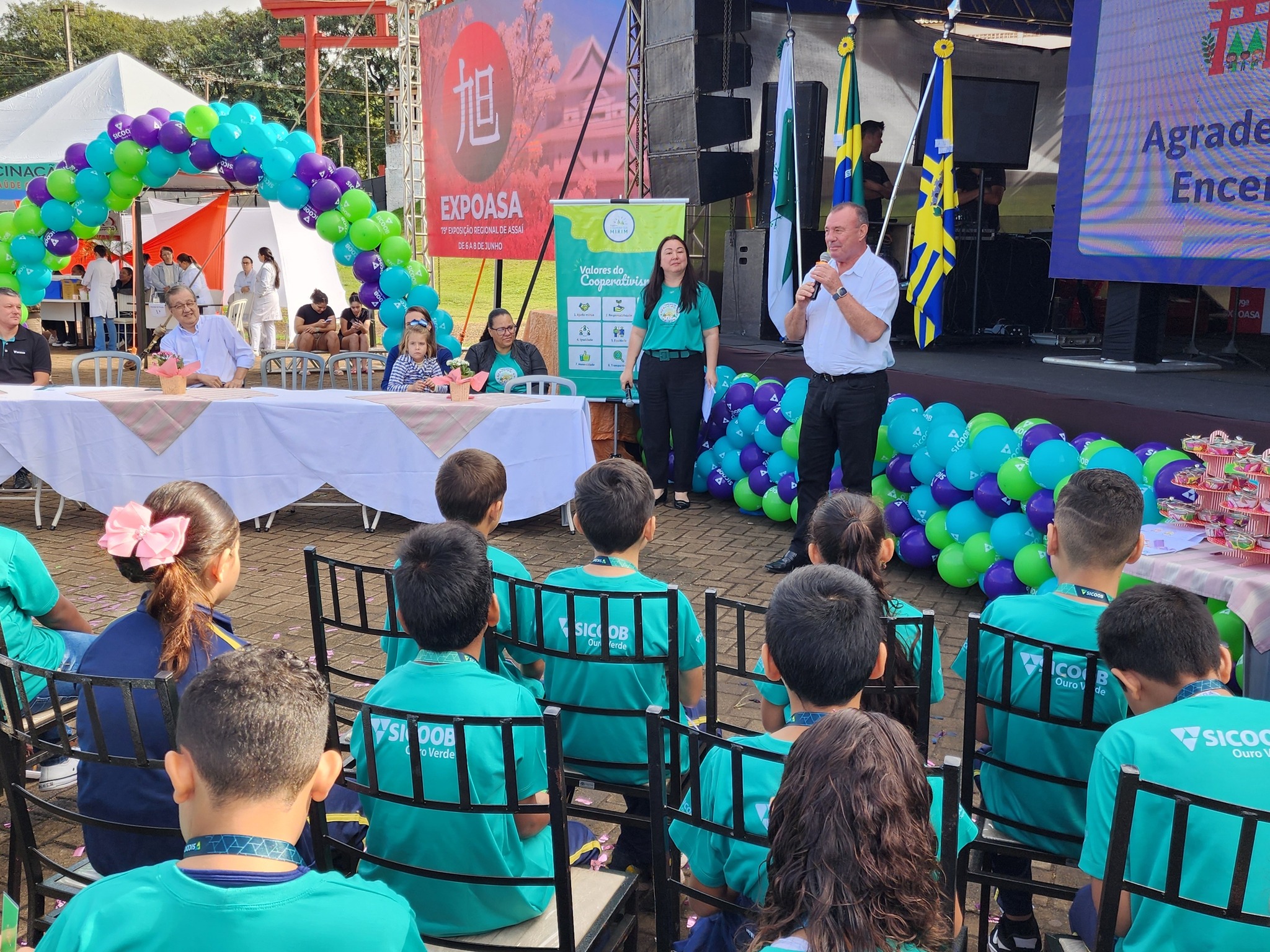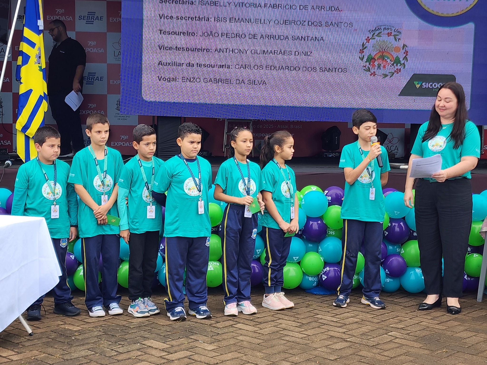 Na 79ª Expoasa, Assaí e Sicoob criaram duas cooperativas mirins nas escolas Padre França Wolkers e Rotary Club, promovendo educação financeira, cooperativismo e cidadania entre crianças, fortalecendo valores como solidariedade e trabalho em equipe.