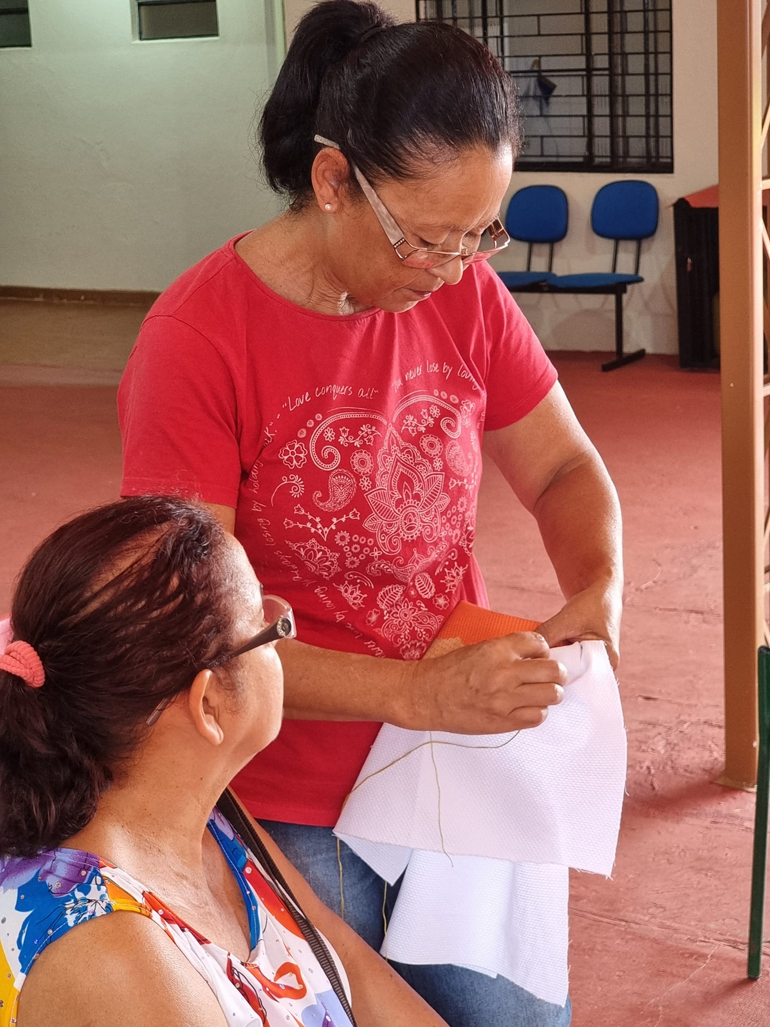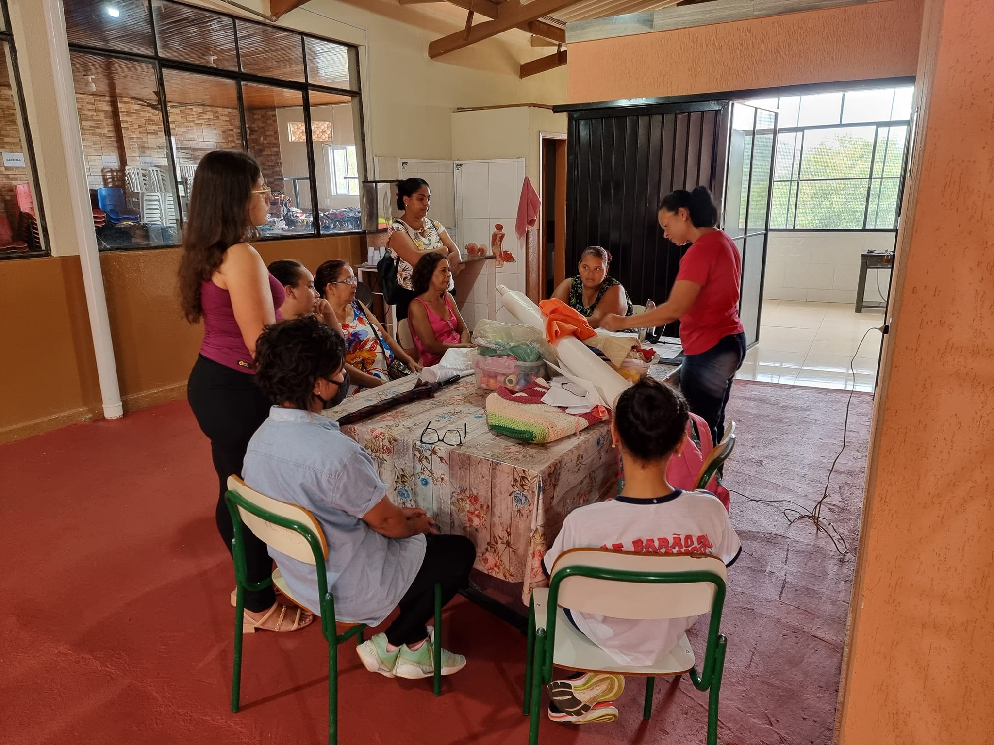 Os encontros são semanais, com aulas todas as sextas-feiras em duas turmas, uma das 13h30min às 15h, e outras das 15h às 16h30min, com oficinas de pintura em tecido, bordado, creche e tricô.