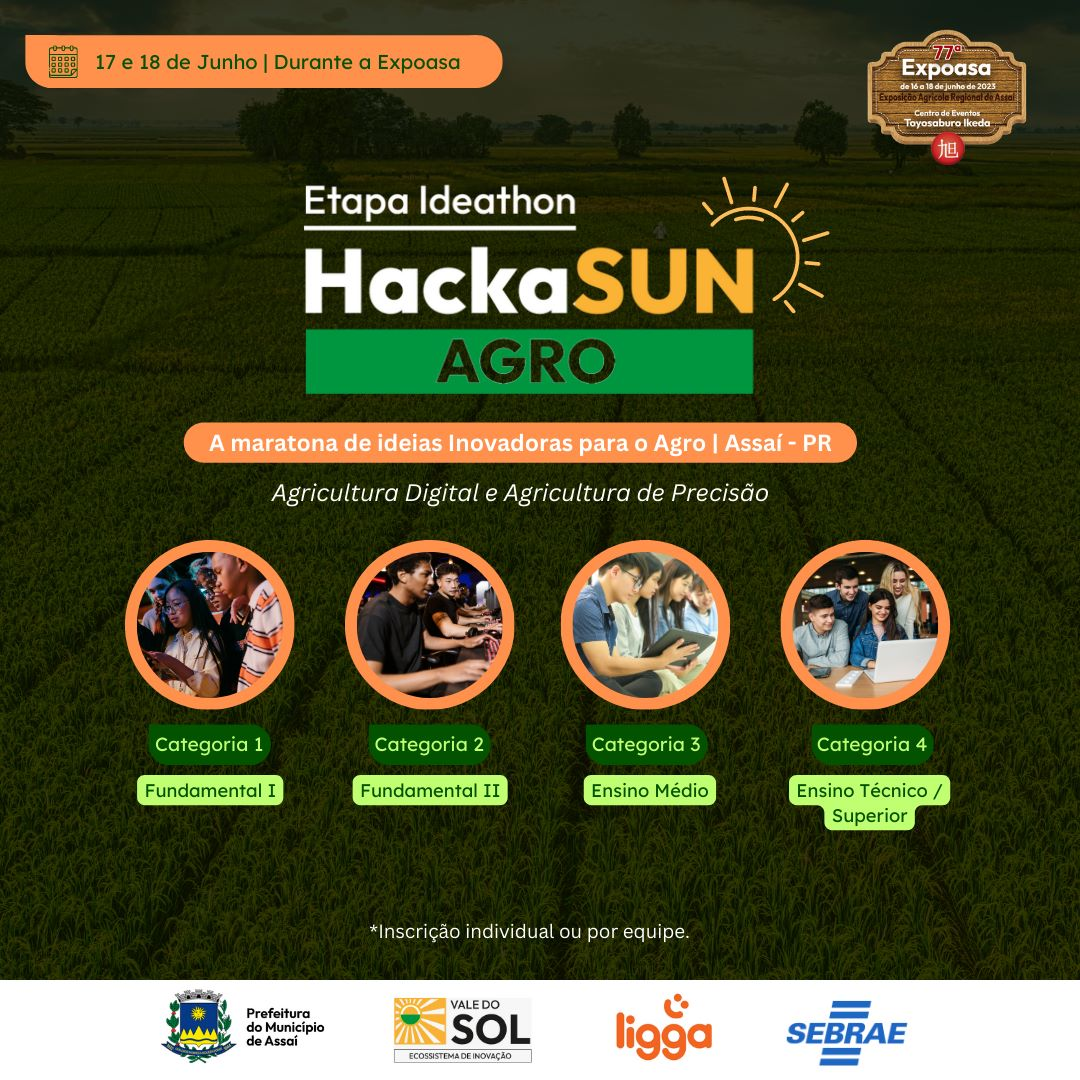 O HackaSUN AGRO – Etapa Ideathon, foi realizado no período de 17 à 18 de junho de 2023, com intuito de promover duas maratonas de inovação: