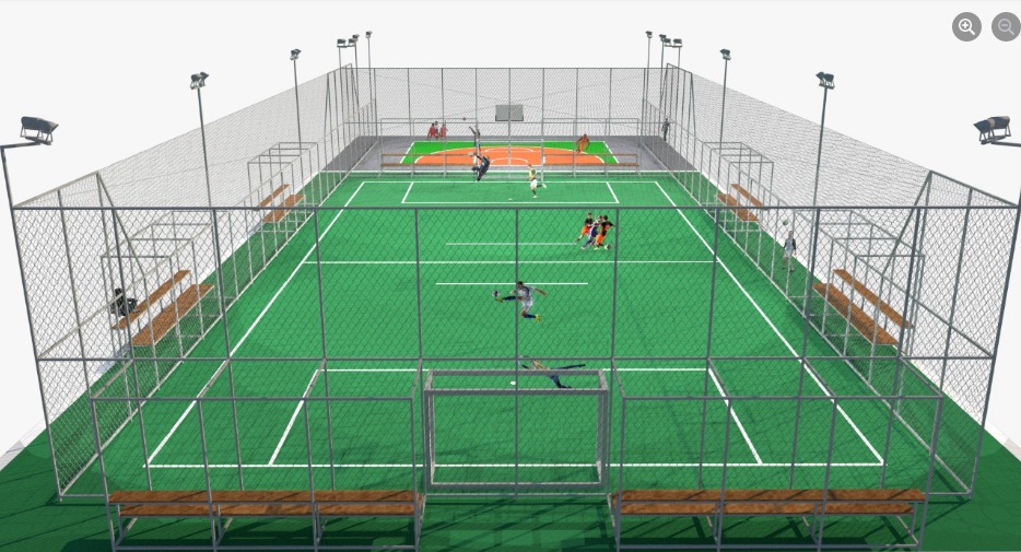 A obra foi iniciada em 07/07/2021 e contemplará uma arena com meia quadra de basquete e uma quadra de futebol society de grama sintética incluindo alambrado, arquibancada e iluminação.