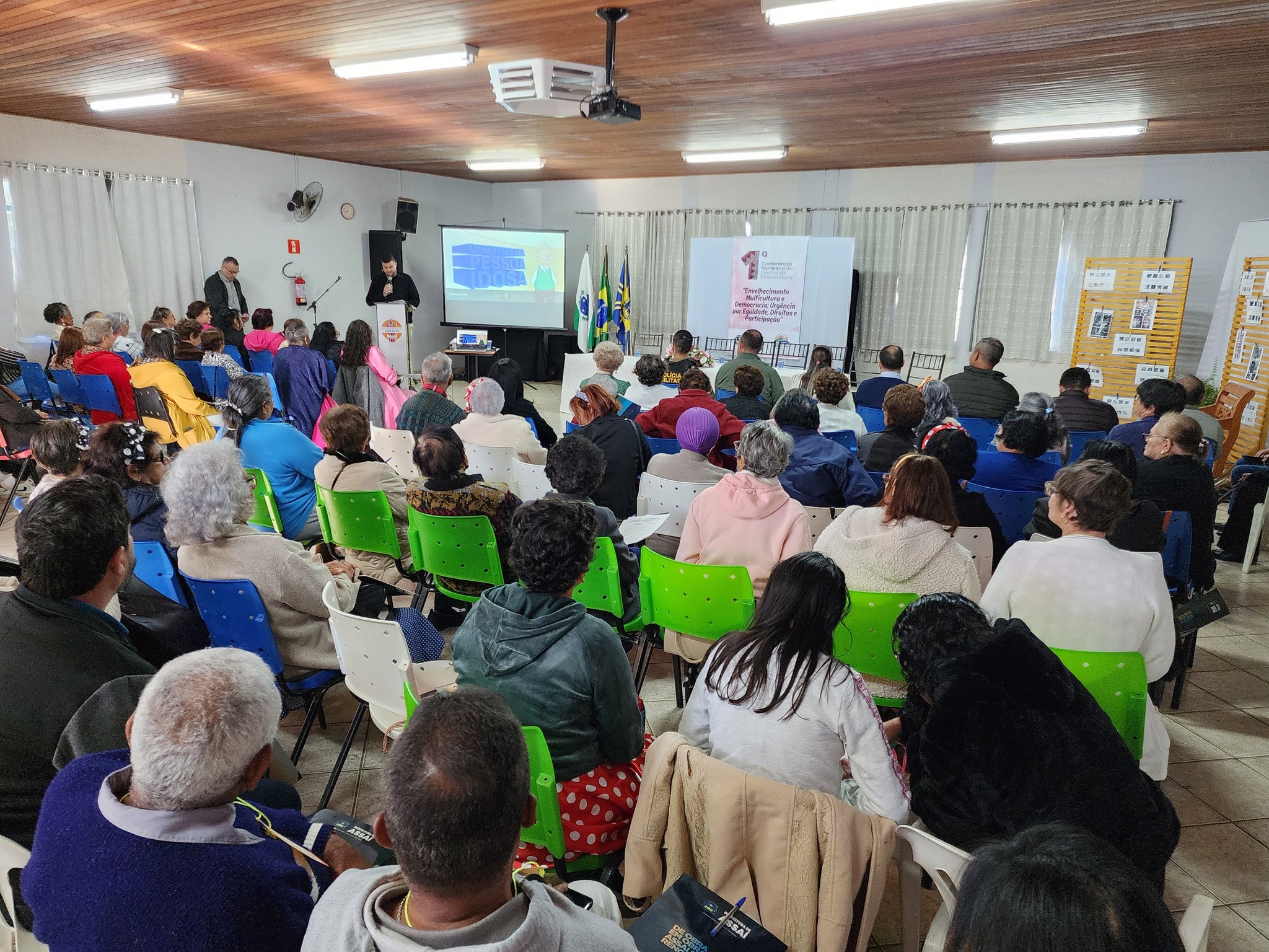 A conferência contou com a palestra magna do Dr. Almir Galassi, doutor em Democracia e Direitos Humanos, que trouxe reflexões sobre o envelhecimento ativo, a participação cidadã e o respeito às diversidades culturais na terceira idade.