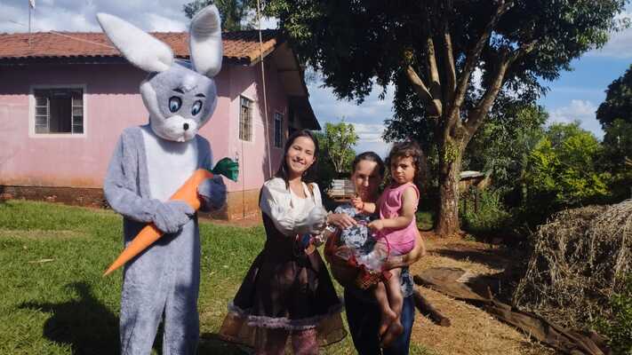 Os Departamentos de Cultura e de Assistência Social da Prefeitura de Ivaiporã cumprem uma programação especial de Páscoa e entregam doces às crianças que residem nos distritos do Alto Porã, Jacutinga e Santa Bárbara.