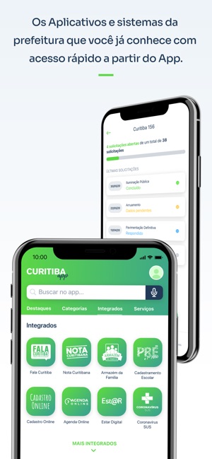 Com o Curitiba APP 600 serviços da Prefeitura estão nas pontas dos dedos da população da nossa capital, pois reúne todos os serviços e informações do município, bem como uma interface direta com os demais aplicativos da Prefeitura (Saúde Já, o Nota Curitibana e o futuro Curitiba 156).