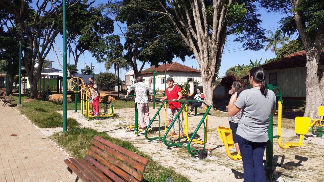 Grupo da terceira idade no Alto Porã. Trabalhando o condicionamento, fortalecimento e mobilidade na terceira idade com os recursos disponíveis dentro do território.
