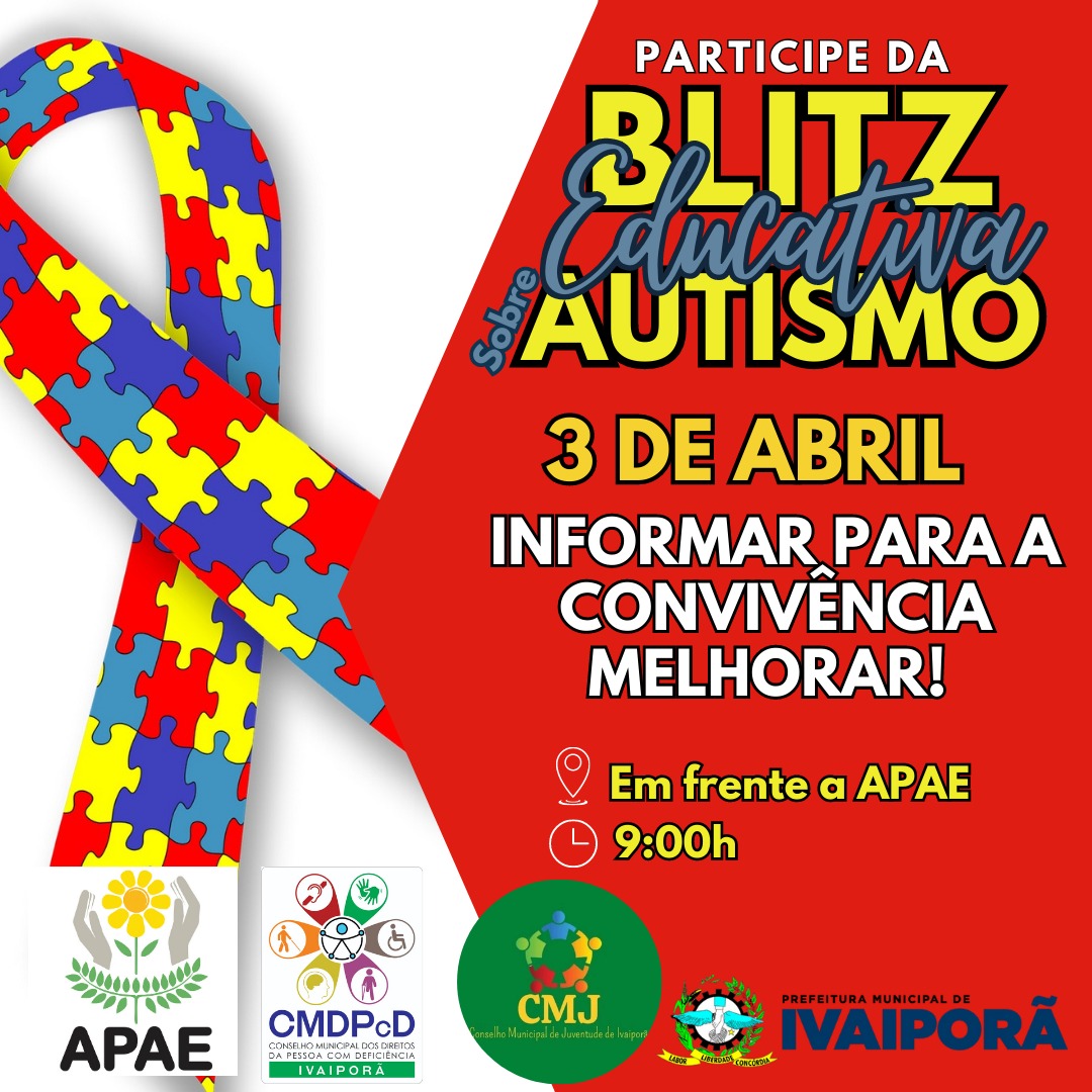 o Departamento Municipal de Assistência Social, juntamente com o Conselho Municipal da Pessoa com Deficiência, Conselho da Juventude e APAE, realizaram a “Blitz Educativa sobre o Autismo”, também foi realizado panfletagem e palestra com a temática.