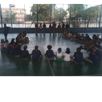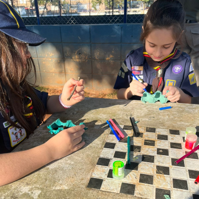 Nosso muteco foi preparado pela tropa se, senior do Grupo escoteiro jaçanã e foi dividido em 5 base: 1 sementeiras ecologicas- feitas a partir de caixa de ovos e decoradas com restos de materiais, 2 brinquedos reciclaveis - feitos com materiais como caixas de leite, garrafas restos de materiais e etc, 3 Pinturas naturais - feitas com papelão pra base e tintas extraídas do cafe, urucum e outros , 4 Bituqueiras- feitas com cano de pvc para evitar que as bitucas sejam lançadas ao vento prejudicando o ambiente e 5 palestra geral sobre concientização e preservação.