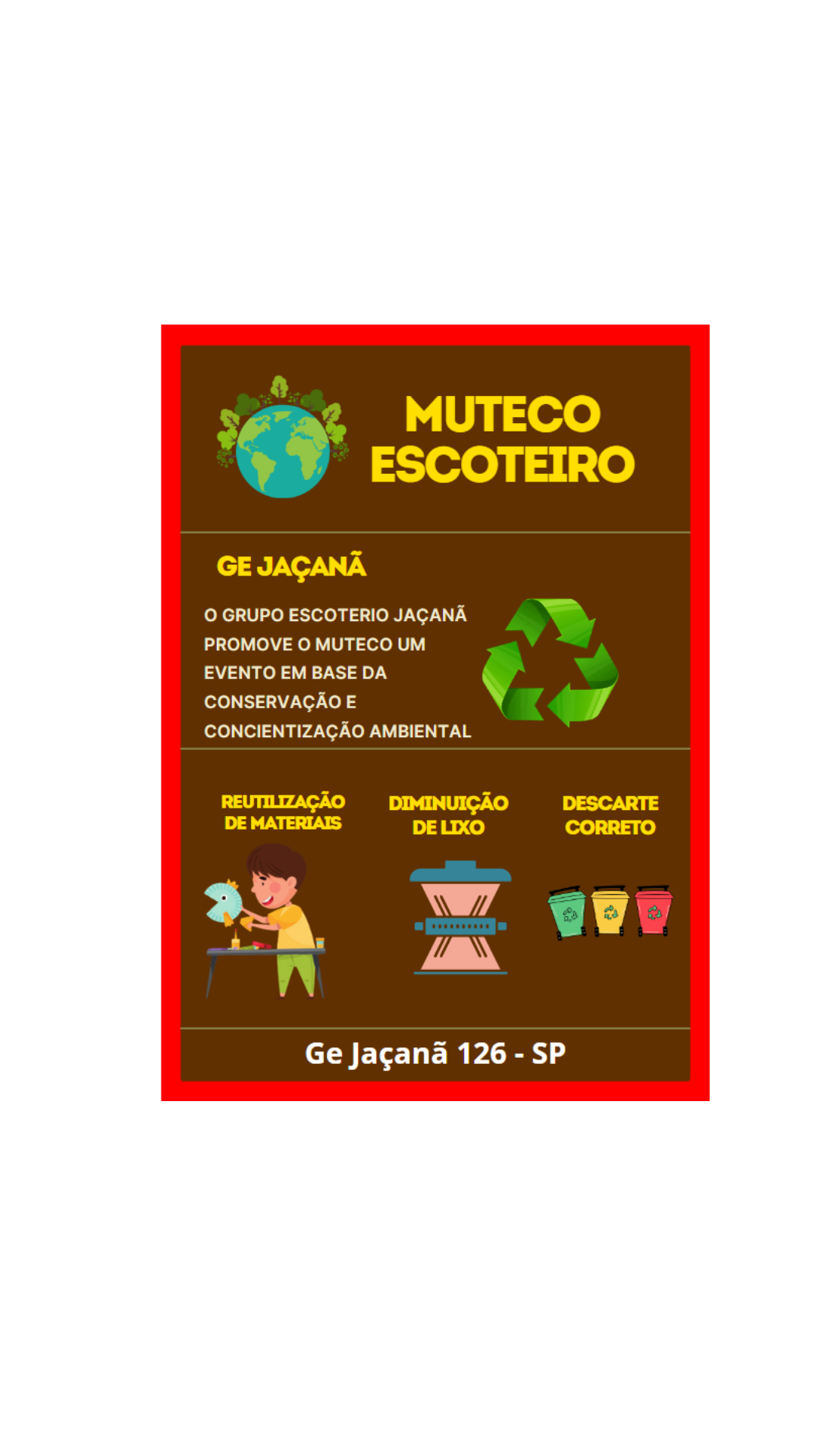 O Muteco escoteiro é uma ativiadade com intuito de concientizar os jovens sobre questões ambientais, desde como separa o lixo adequadamente ate como reutilizado e não esquecendo tambem de como evitar o descarte incorreto.