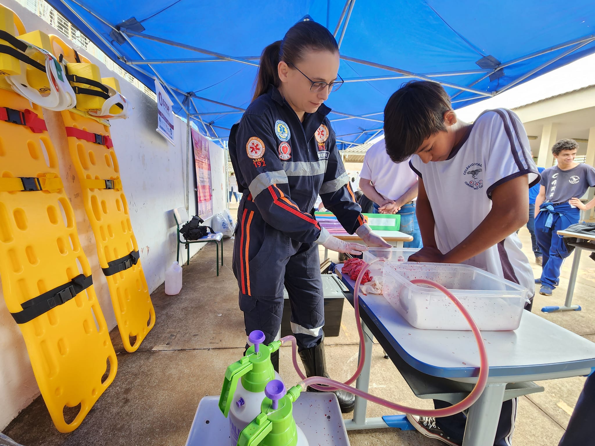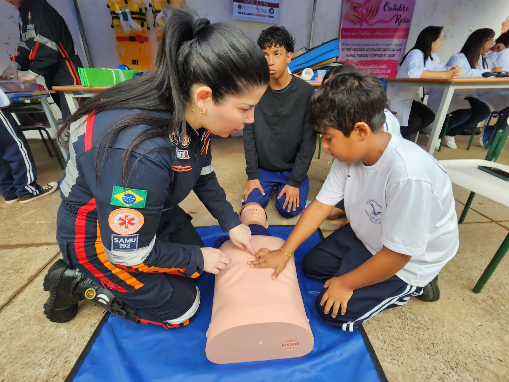 Os alunos participam de palestras sobre o SUS e a estrutura da rede municipal de saúde, sexualidade e higiene pessoal, saúde auditiva, serviços da vigilância sanitária, primeiros socorros, aferição de pressão e vacinação.