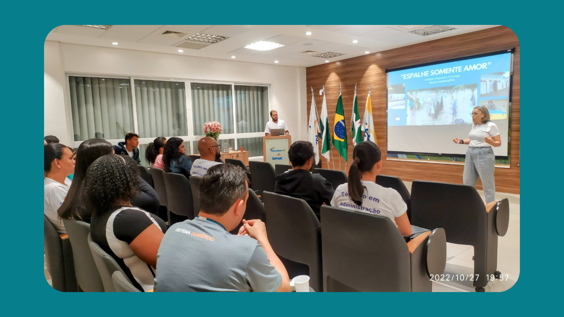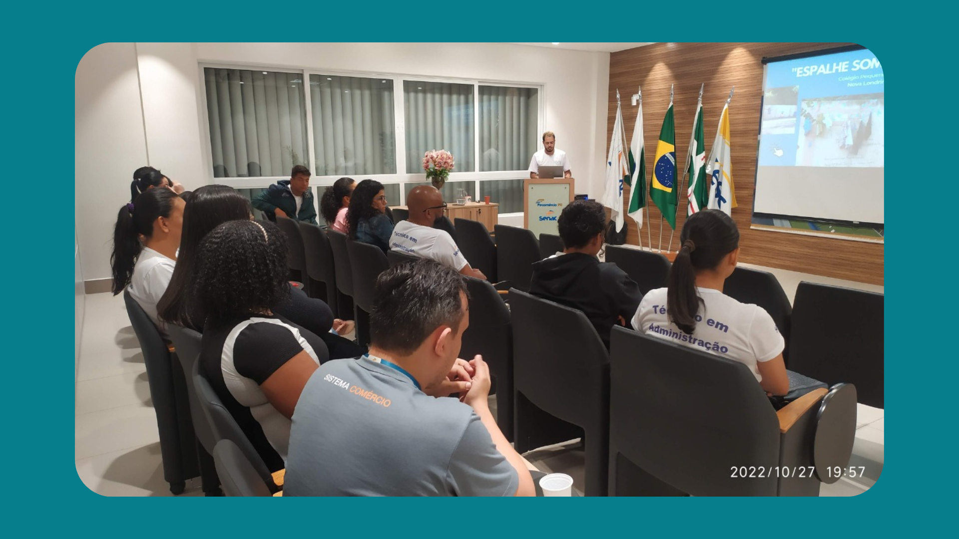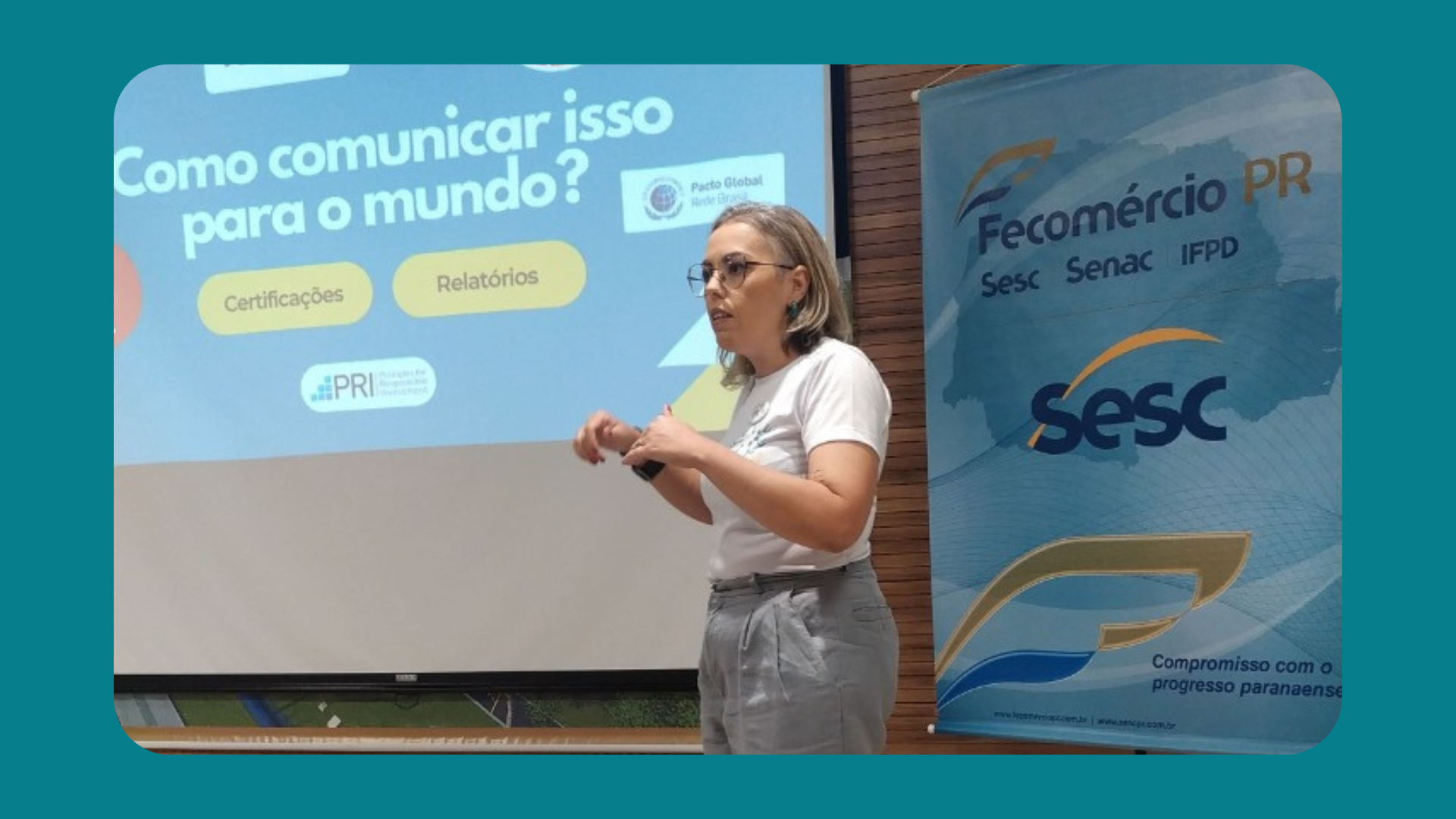 Palestra sobre o tema "ESG e Desenvolvimento Sustentável nas Empresas" realizada em Nova Londrina-PR, em parceria com o SESC da região, voltada a empresários e alunos para fechamento da Semana do Comerciário.