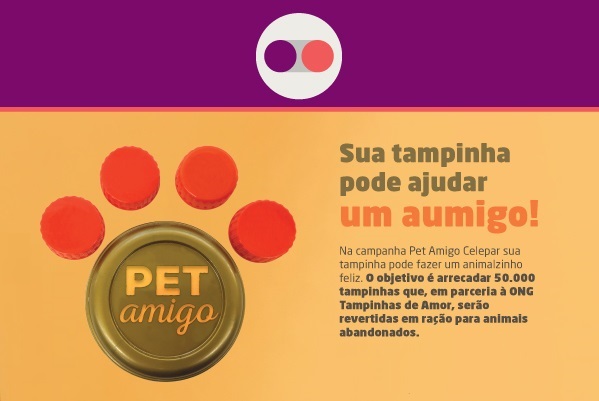 A campanha Pet Amigo Celepar tem o objetivo de arrecadar 50.000 tampinhas plásticas que, em parceria com a ONG Tampinhas de Amor, serão revertidas em ração para animais abandonados.