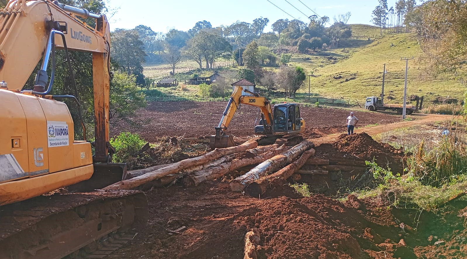 Prefeituras de Ivaiporã e Ariranha do Ivaí reconstroem ponte no Berro da Onça