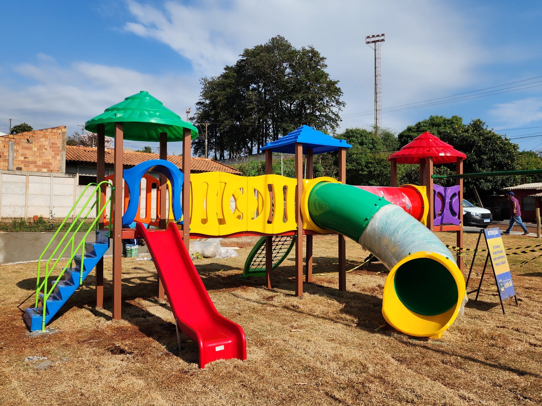 A revitalização do Jardim Veneza contempla a pavimentação com paver no local, a execução de calçadas e a instalação de parque infantil, garantindo assim o desenvolvimento de infraestruturas de qualidade para os moradores do bairro.