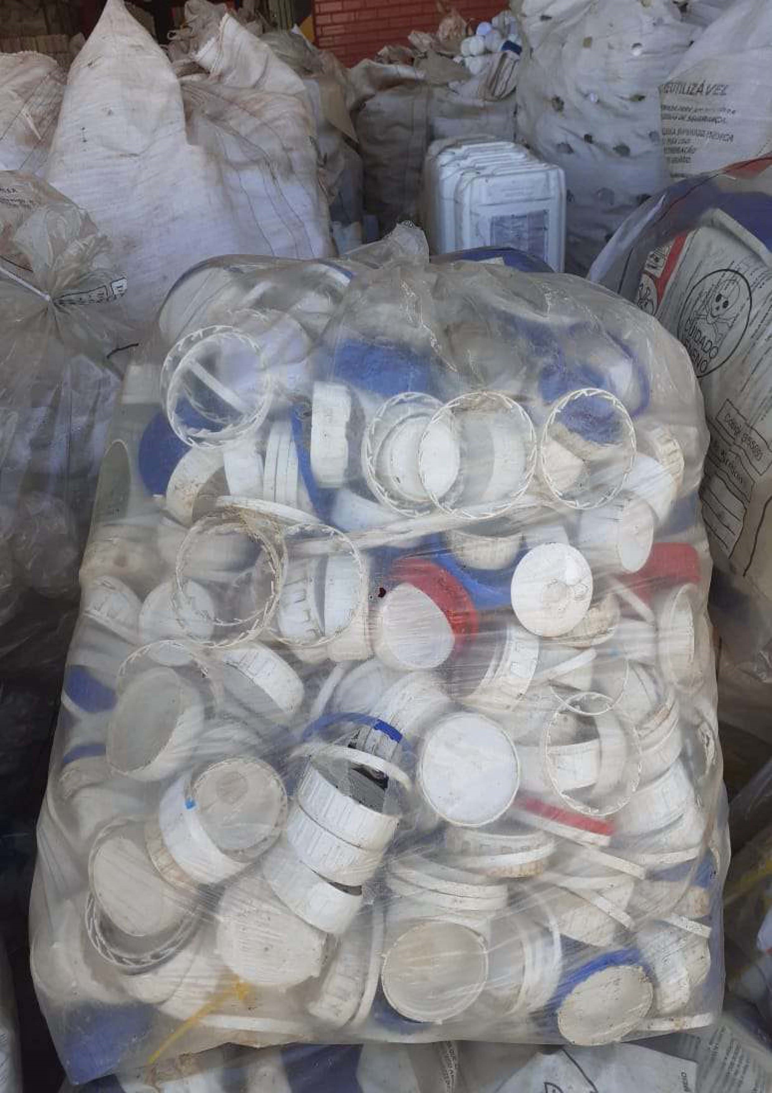 Tampas de embalagens de agrotóxicos. Foto: INPEV - Guarapuava.