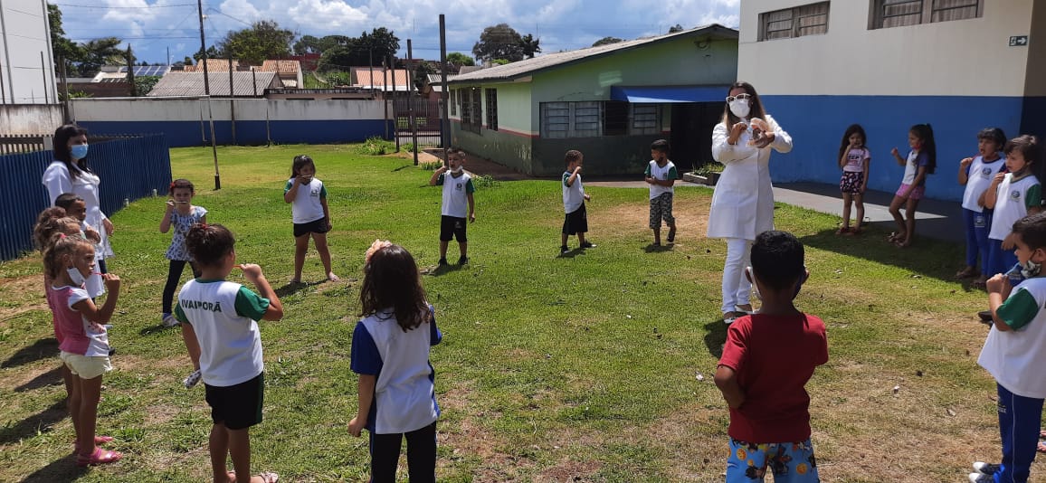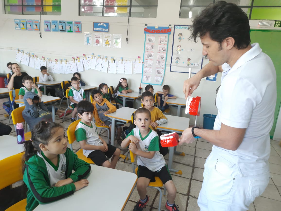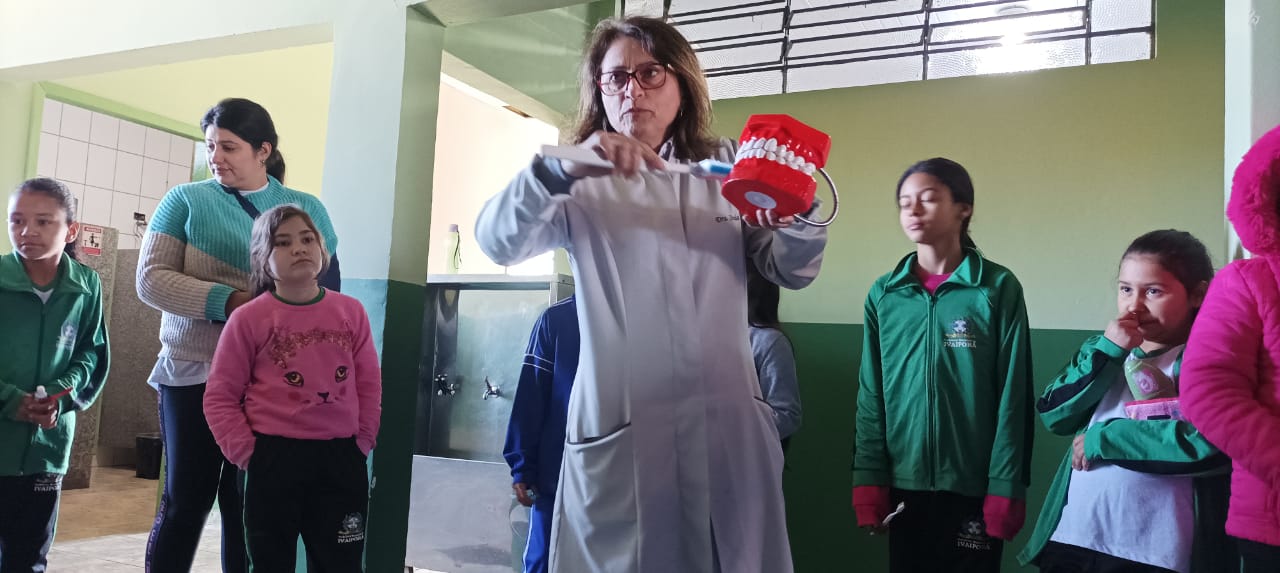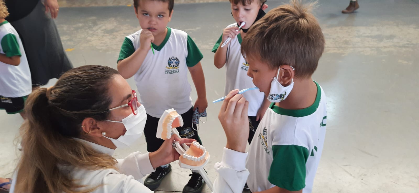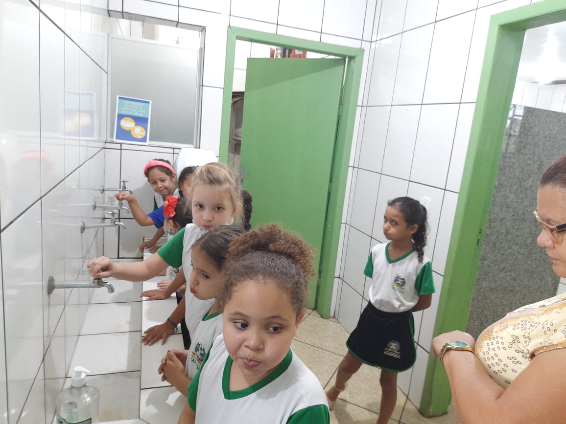 A escovação bucal supervisionada indireta deve ser realizada no ambiente escolar. Algumas escolas do município realizam semanalmente, outras mensalmente após a alimentação oferecida nas escolas.