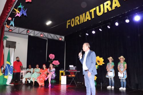 Subiram ao palco da formatura alunos das Escolas Municipais Bento Viana, Carlos Lacerda, Ivaiporã, Leila Diniz, Maria Diva de Proença e Ignes de Souza Caetano, e das Escolas do Campo Dom João VI, João Pessoa, Jacutinga José Aparecido Peres (Alto Porã), e dos Centros Municipais de Educação Infantil Maria Burato (Alto Porã) e Nossa Senhora de Lourdes (Jacutinga).