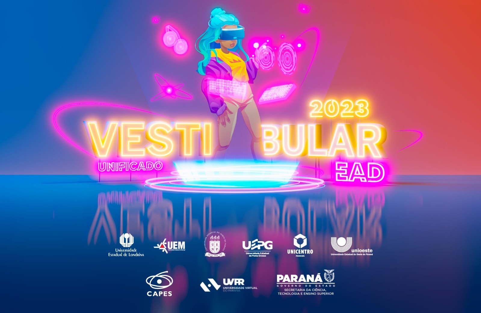 O vestibular unificado EAD da Universidade Virtual do Paraná 2023 tem 2.292 vagas gratuitas de graduação. As vagas são divididas entre a Universidade Estadual do Centro-Oeste (Unicentro), Universidade Estadual de Londrina (UEL), Universidade Estadual de Maringá (UEM), Universidade Estadual do Norte do Paraná (UENP), Universidade Estadual de Ponta Grossa (UEPG) e a Universidade Estadual do Oeste do Paraná (Unioeste) para cursos de licenciatura e tecnológicos em diversas áreas do conhecimento – com apoio da Secretaria de Estado da Ciência, Tecnologia e Ensino Superior (Seti) e da Capes, por meio do Sistema Universidade Aberta do Brasil.